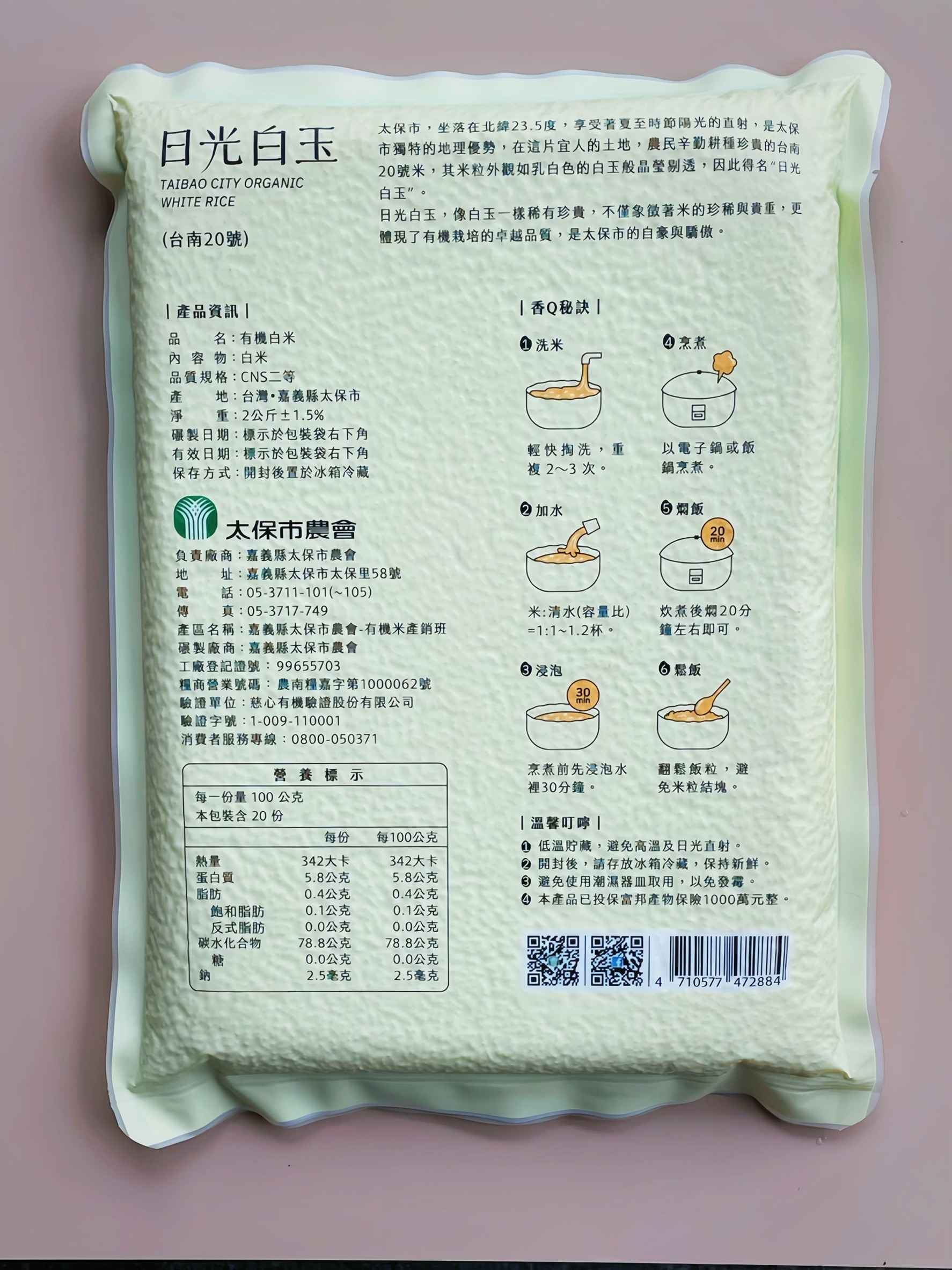 日光白玉有機白米(台南20號)