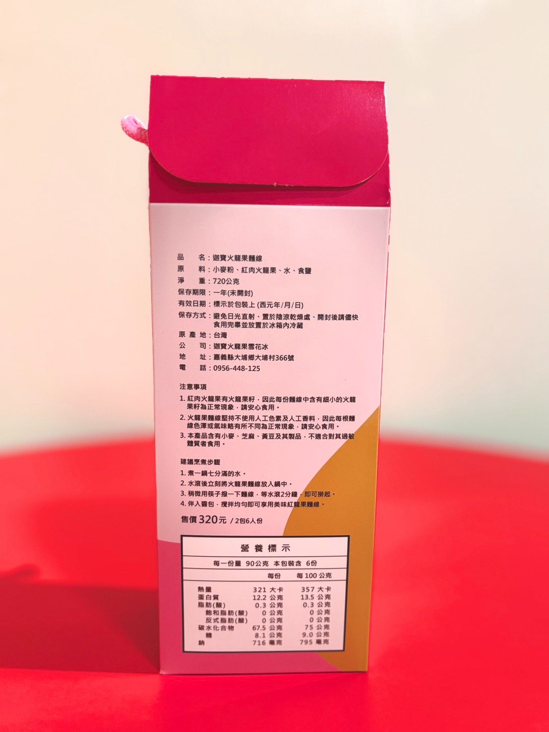 火龍果的紅色果肉含有天然色素,能賦予麵條迷人的色澤,無需人工添加色素。